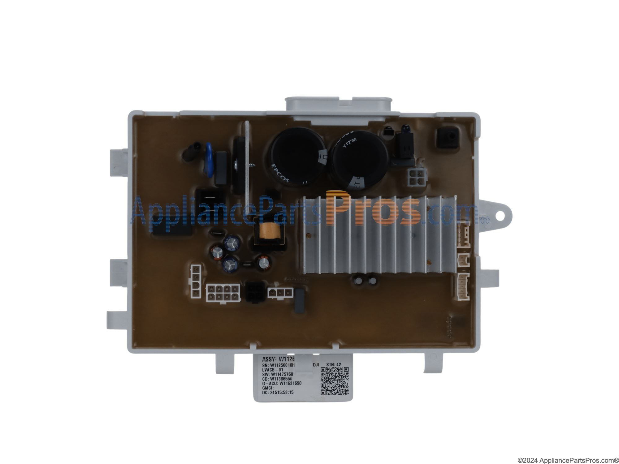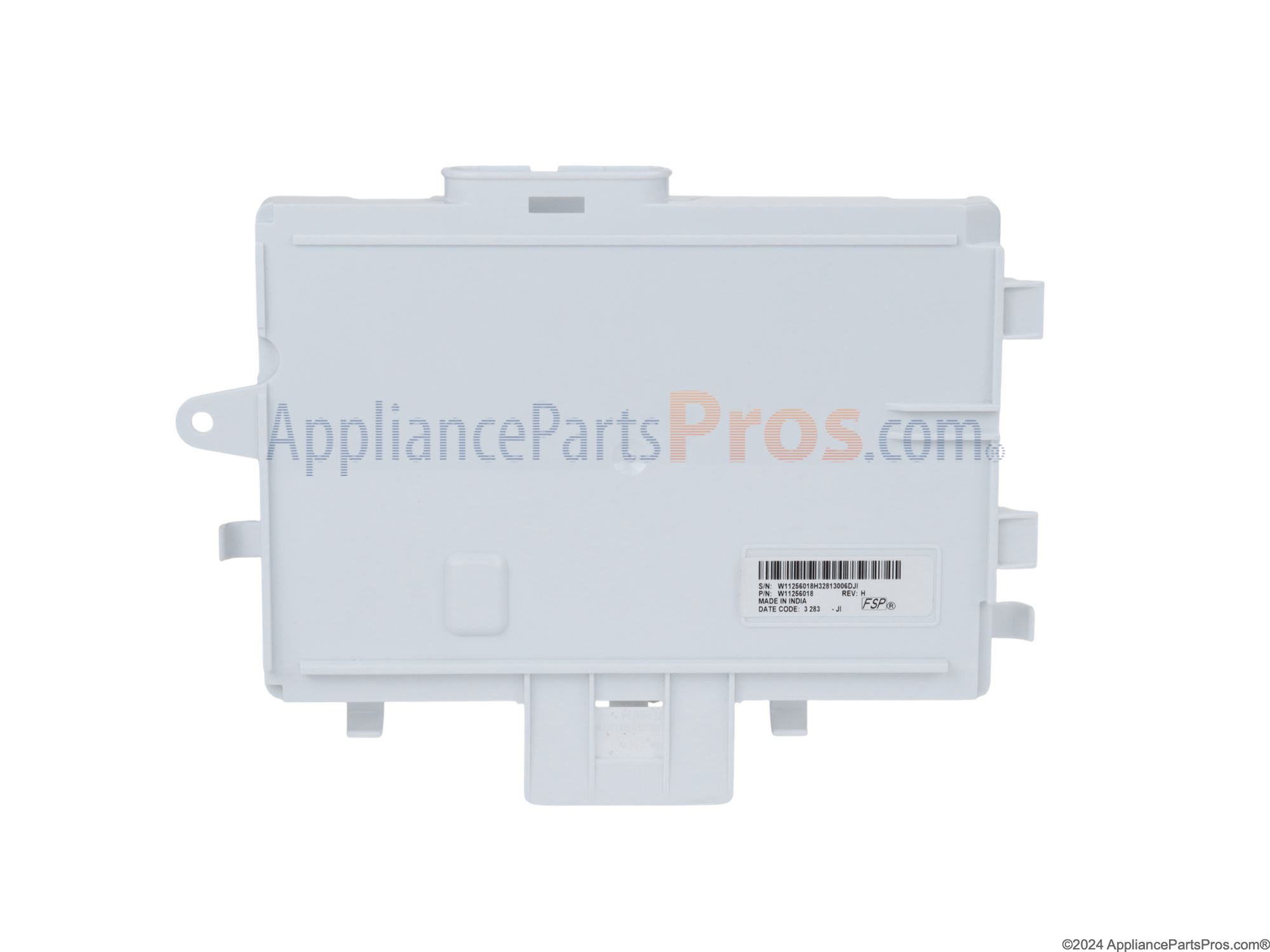 The Main Control Board is an OEM component for Whirlpool washing machines. Located centrally inside the washer cabinet, this printed circuit board regulates all motor, washing functions, and cycles.