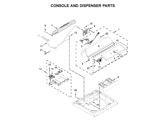The Console is an OEM part for Whirlpool machines. Located at the top center of the washer, it houses critical interface controls for cycle selection and initiation.