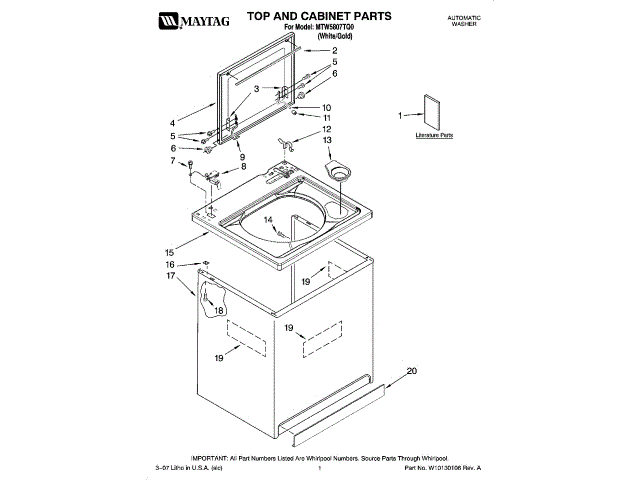 Whirlpool W10092744 Feature Sheet OEM Part