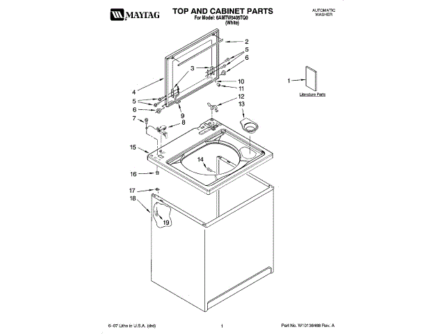 Whirlpool W10117865 Feature Sheet OEM Part