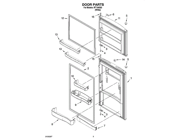 Whirlpool 2266197W-9 Freezer Door (Includes Illus. 3,4,5 12 & 15) OEM Part