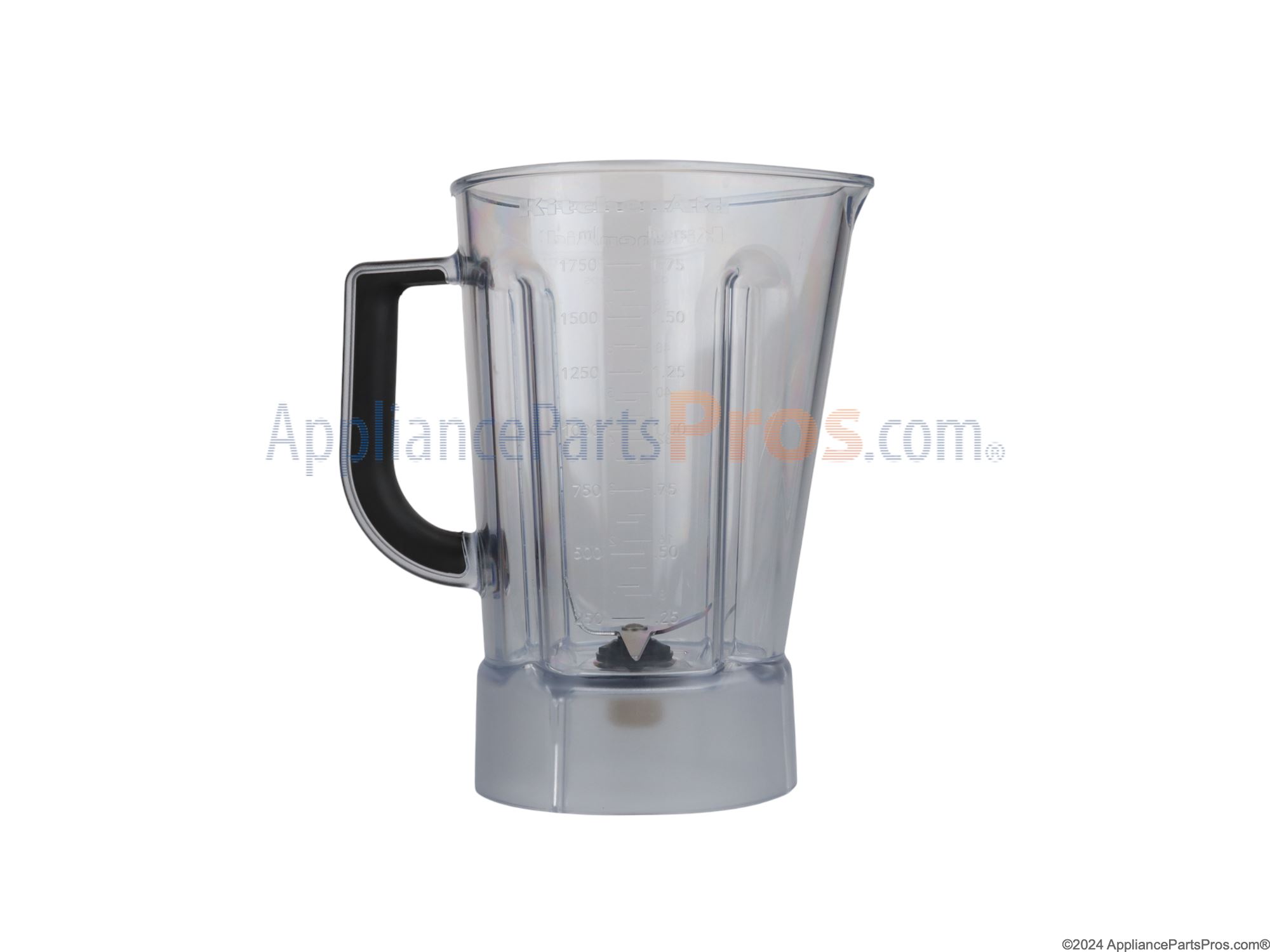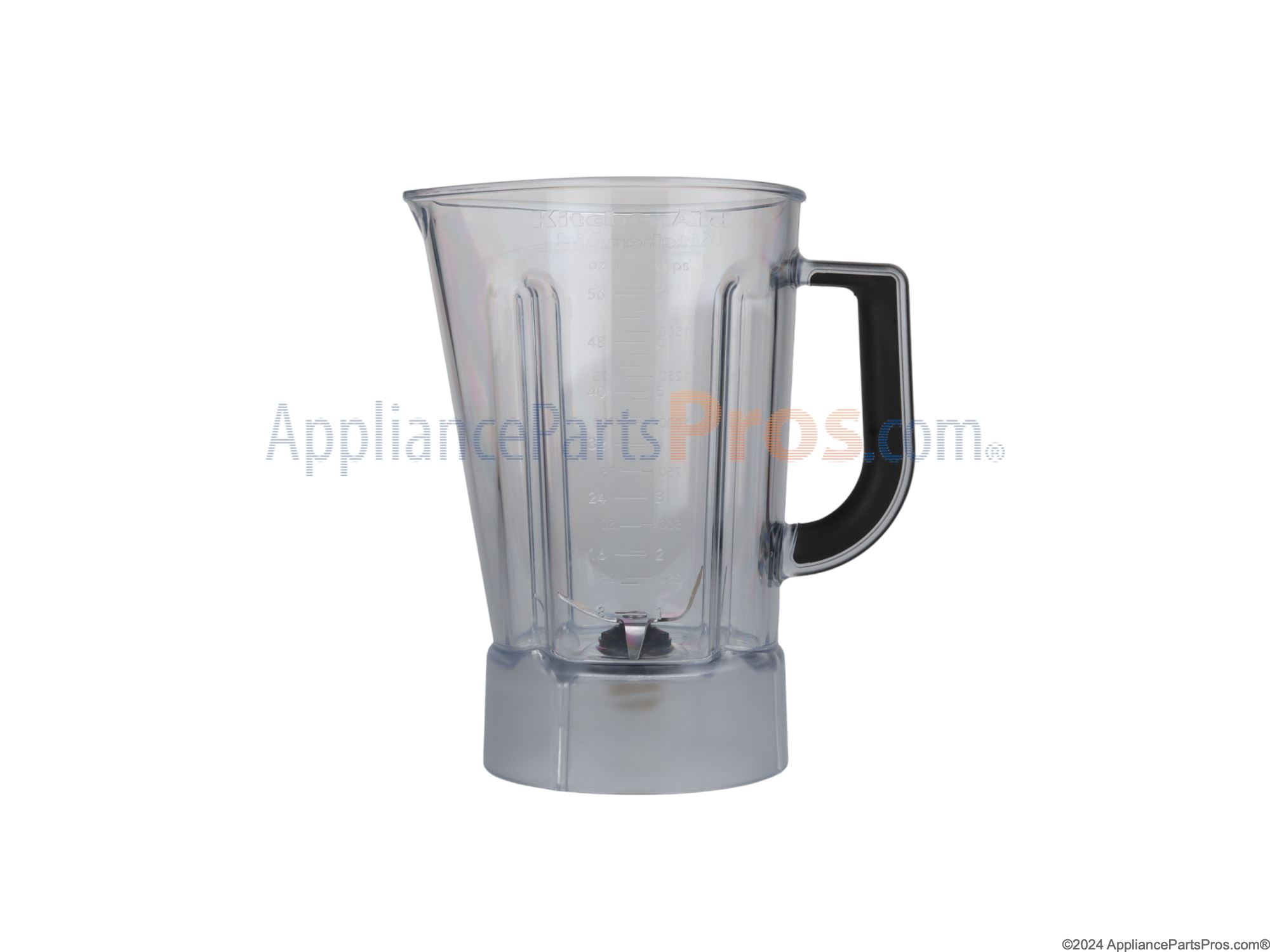The Jar is an OEM part for Whirlpool blenders. This jar serves as the container where ingredients are placed for blending, mixing, or pureeing. This plastic jar measures approximately 8 inches wide by 10 inches high and has a capacity of 56 liquid ounces. The part includes the jar, blades, and bottom coupling.