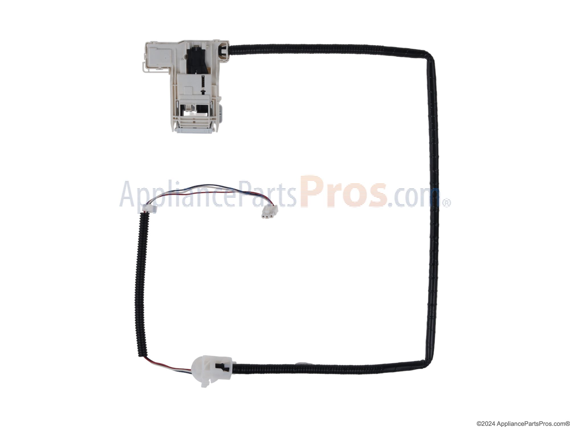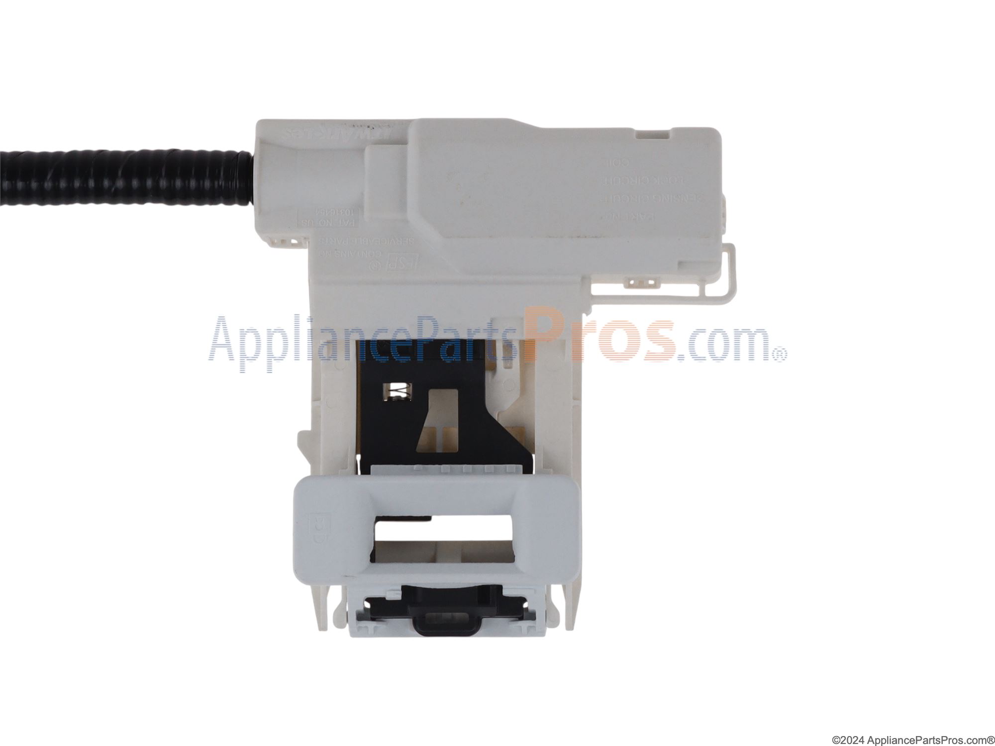 The Door Latch is an OEM part for Whirlpool washers. It ensures that the washer door locks securely during operation, preventing leaks and ensuring that the washer will not operate unless the door is properly closed. This latch is crucial for the safety and efficiency of the washing cycle.