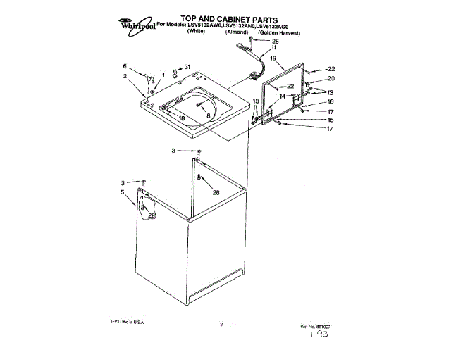 Whirlpool LIT881027 List, Repair Parts OEM Part