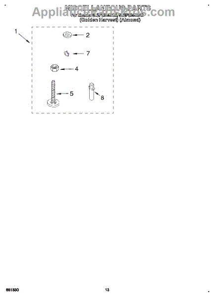 Whirlpool LIT881330 List, Repair Parts OEM Part