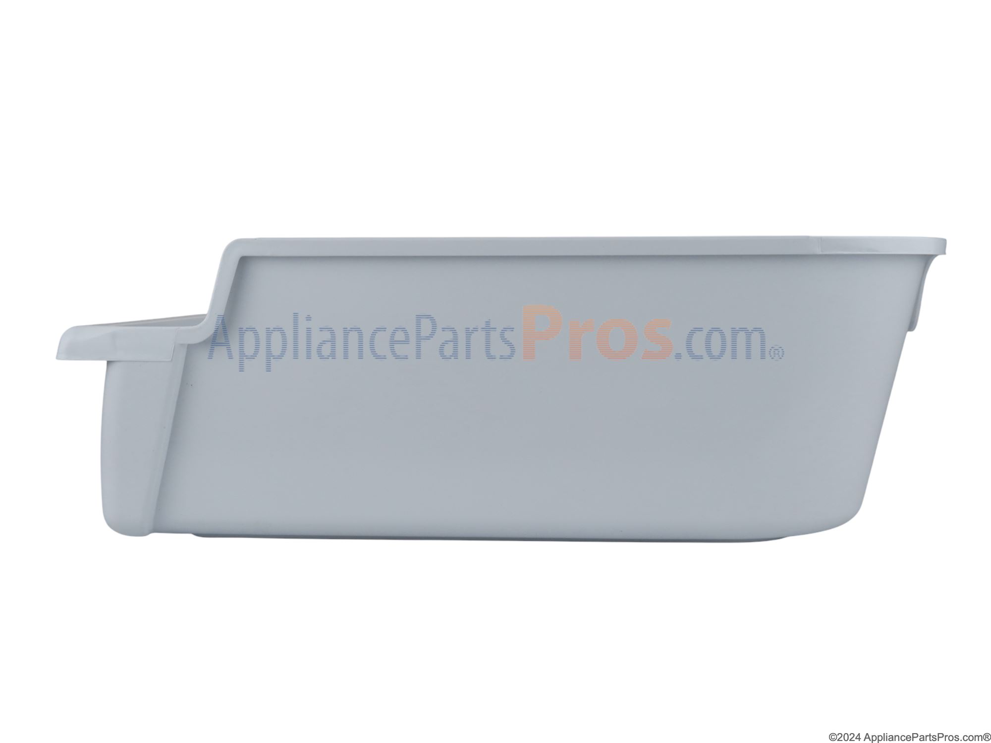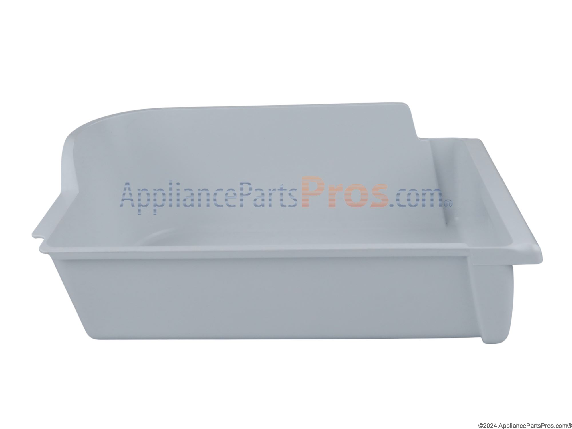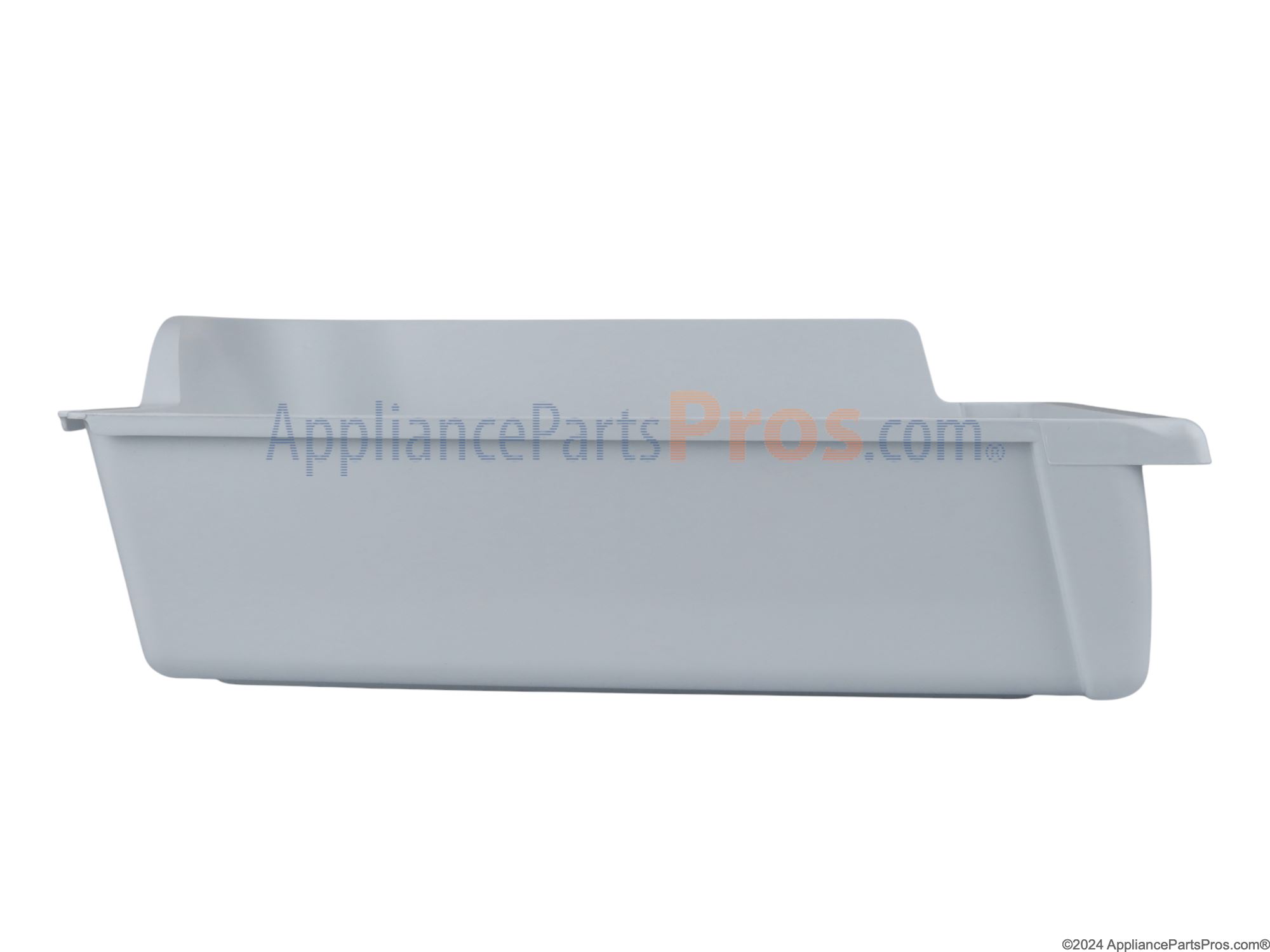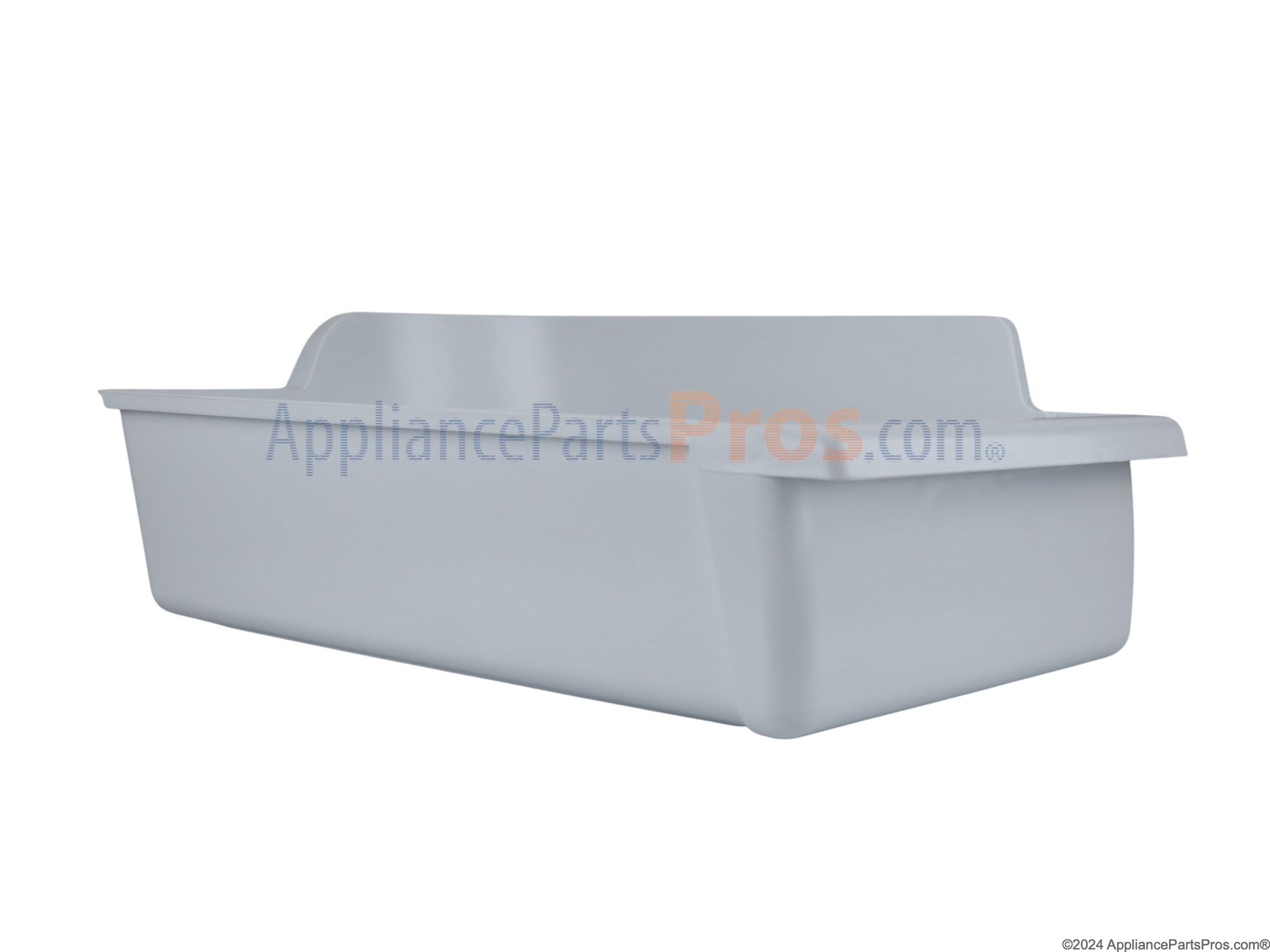 The Ice Pan is an OEM part for Whirlpool refrigerators. It is used to collect and store ice produced by the icemaker, ensuring a dedicated space for easy access and storage of ice. It measures approximately 11" W x 8" H x 20" D.