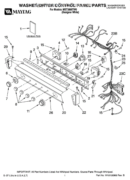 Part Number W10124093 replaces AP3997353, 1448676, AH1519216, EA1519216, PS1519216.