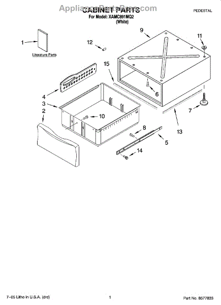 Whirlpool 857783 Parts List (3) OEM Part