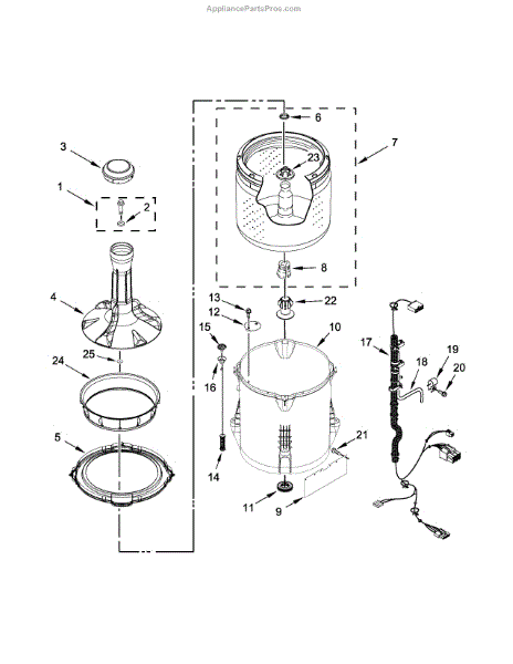 The SEAL-TUB is an OEM part for Whirlpool washing machines. It consists of a flexible sealing gasket that creates a tight seal between the washer tub and the outer cabinetry. This seal prevents leaks and contains water within the tub during operation.