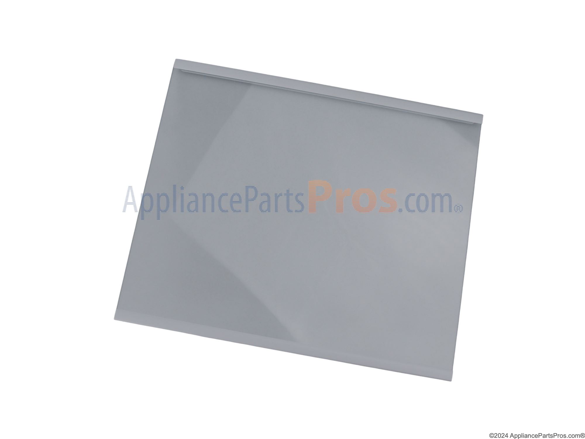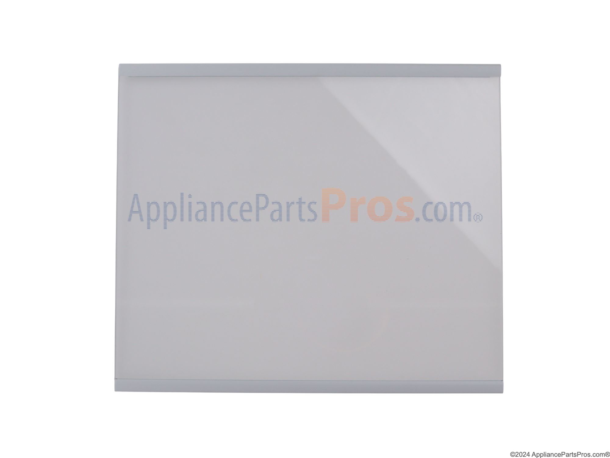 The Glass Shelf is an OEM part for Whirlpool refrigerators. Installed on metal slides within the fridge compartment, this durable glass shelf provides an open platform for optimizing food storage organization. The glass shelf measures approximately 11.7" x 9.9"