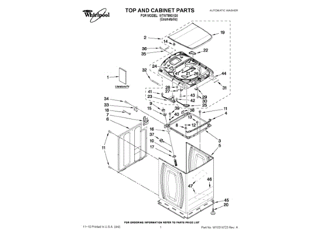 Whirlpool W10285672 Top & Console Assembly OEM Part