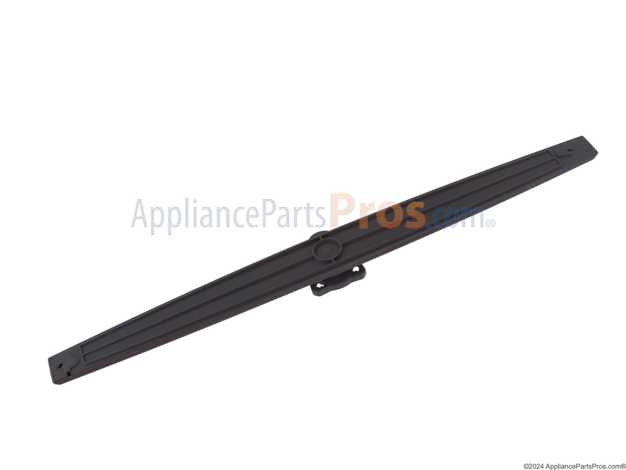 The Arm Spray is an OEM part for Whirlpool dishwashers. This component is crucial in the dishwasher's ability to effectively clean dishes, as it distributes water evenly throughout the unit during a wash cycle. Located beneath the upper rack, the arm spray rotates and sprays water at a controlled pressure and angle, ensuring that all dishes, regardless of their placement, are thoroughly washed.