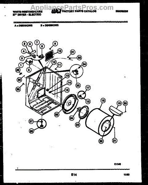 Parts for Frigidaire DE400KDD3: 02 - Cabinet And Component Parts