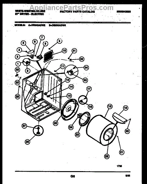 Dryer drum bearing ball ensures smooth drum rotation. Replace if drum wobbles, squeaks, or won't turn. Confirm fit with your model number before ordering.