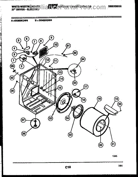 Parts for Frigidaire DE500KDH4: 02 - Cabinet And Component Parts