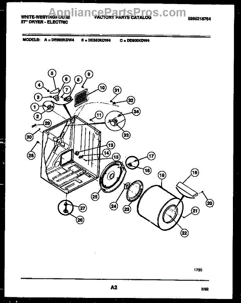 Parts for Frigidaire DE600KDD4: 02 - Cabinet And Component Parts