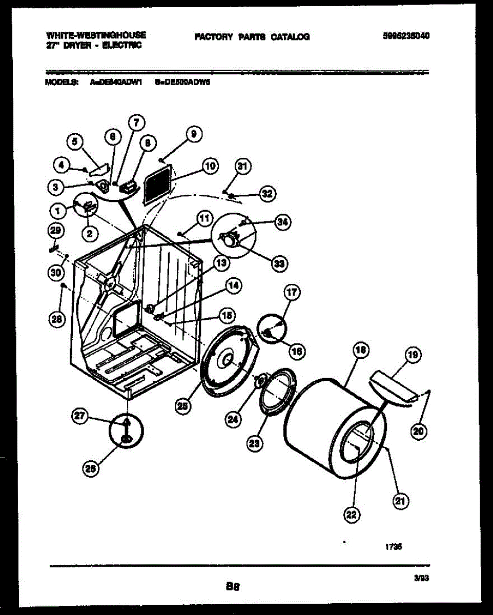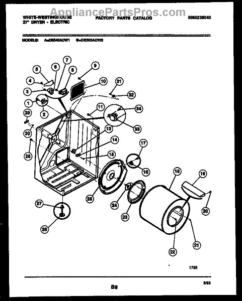 Parts for Frigidaire DE640ADD1: 02 - Cabinet And Component Parts