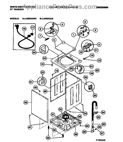 The Cord is an OEM replacement part for Frigidaire washing machines. Extending from the rear of the unit, it safely powers the washer through a connection to a wall outlet.