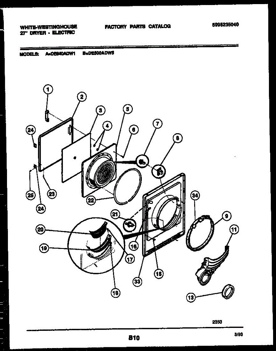 Parts for Frigidaire DE500ADD5: 03 - Door Parts