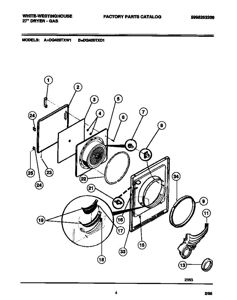 Replace your dryer's broken or worn door hinge. This hardware component attaches the door to the cabinet, ensuring proper alignment and smooth operation.