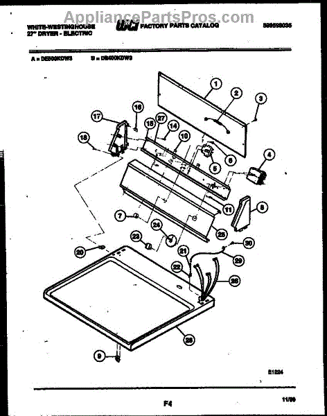 Parts for Frigidaire DE500KDH3: 04 - Console And Control Parts