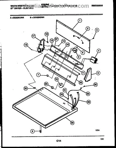 Parts for Frigidaire DE500KDW4: 04 - Console And Control Parts