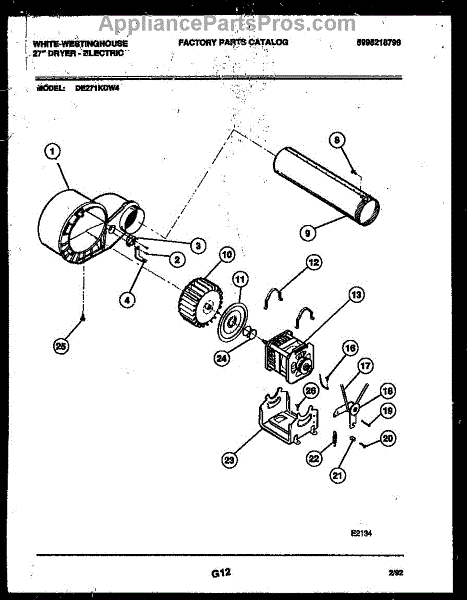 Parts for Frigidaire DE271KDW4: 05 - Blower And Drive Parts