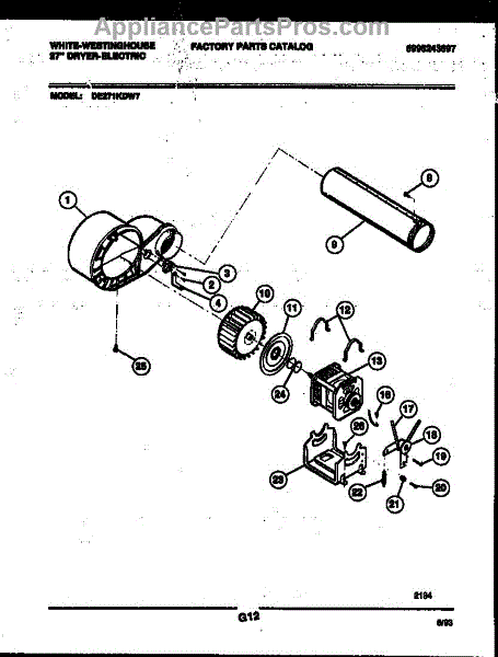Parts for Frigidaire DE271KDW7: 05 - Blower And Drive Parts