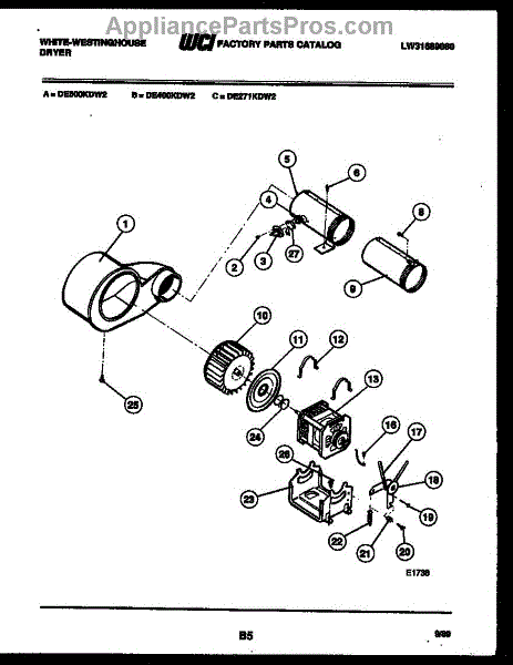 Parts for Frigidaire DE500KDH2: 05 - Motor And Blower Parts