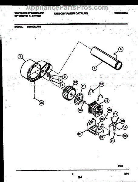 Parts for Frigidaire DE600ADW3: 05 - Blower And Drive Parts