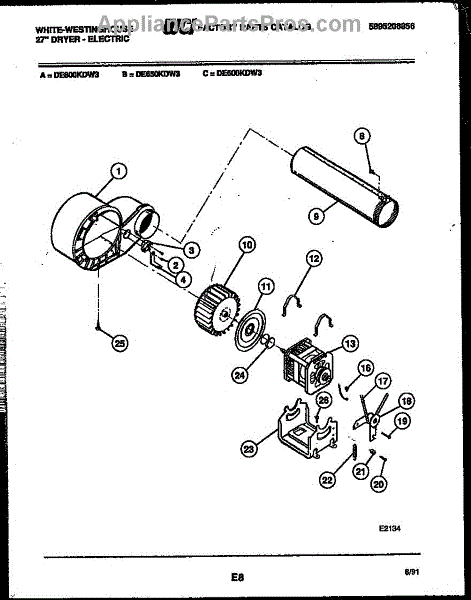 Parts for Frigidaire DE600KDH3: 05 - Blower And Drive Parts