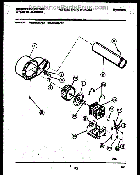 Parts for Frigidaire DE650ADW3: 05 - Blower And Drive Parts