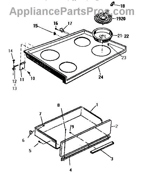 Mounting screw for range bottom drawer assembly. Replaces lost, stripped, or damaged screws. 6-20 x 0.312 inch size. Essential hardware for drawer repair.