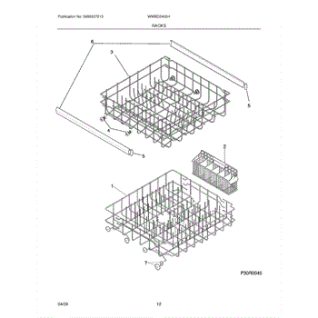 Complete lower dishrack assembly that slides on tub rails. Holds plates, bowls, and cookware. Replace when original rack is rusted, cracked, or damaged.