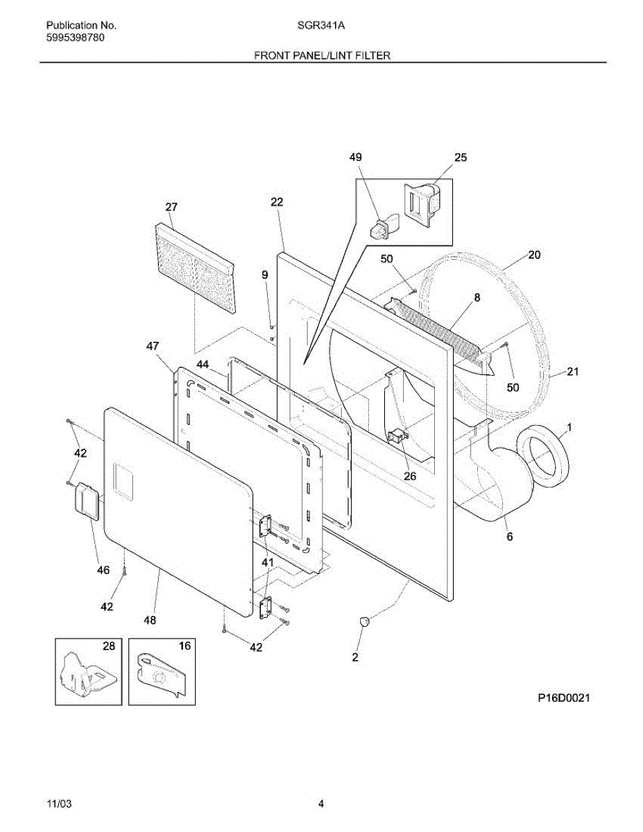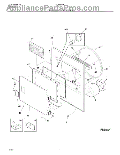 Parts for White Westinghouse SGR341AQ5: 05 - Front Panel / Lint Filter Parts