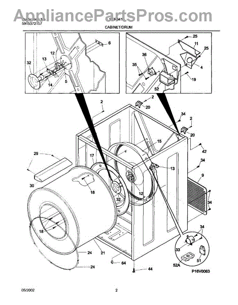 The Rear Drum Bearing Kit is an OEM replacement part for Frigidaire dryers. It contains a set of parts responsible for supporting the rear end of the dryer drum, allowing it to rotate smoothly and efficiently during the drying cycle.