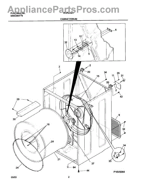 The Drum Bearing Bracket is an OEM replacement part for Frigidaire dryers. It holds and supports the drum bearing, which allows the dryer drum to spin smoothly during the tumbling and drying cycle. Causes of failure can be cracking or breaking of the bracket over time due to constant use and stress. Improper installation that puts strain on the bracket may also lead to issues. Symptoms of a bad drum bearing bracket include: