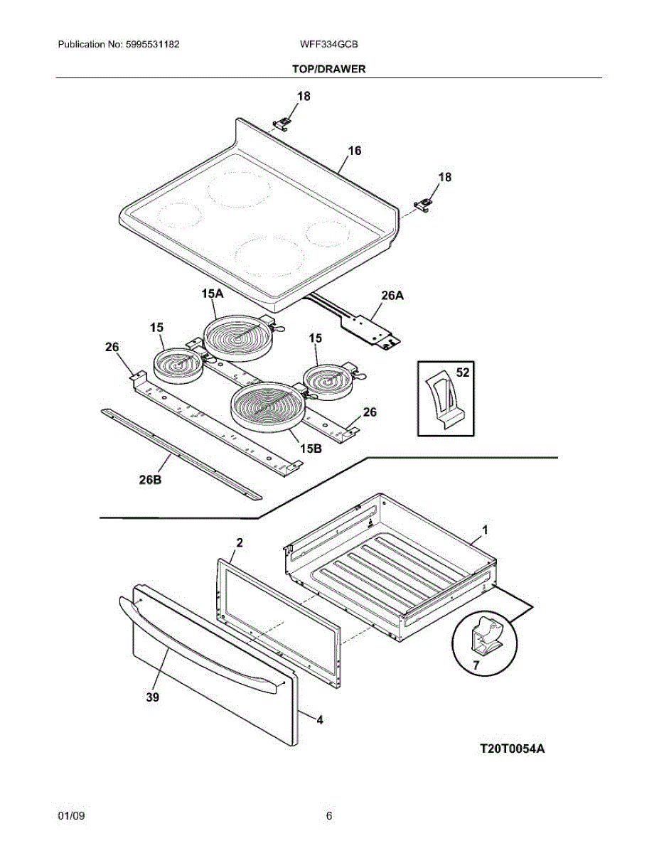 This main top provides the finished cooktop surface that supports burners and cookware, restoring the range's proper appearance and functionality. It's the upper cabinet piece that other cooktop components mount to. What it does: