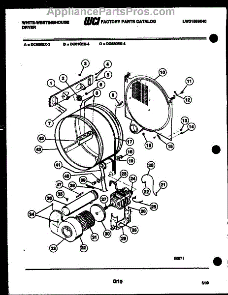 Parts for Frigidaire DC600EXD3: 04 - Drum, Blower And Drive Parts