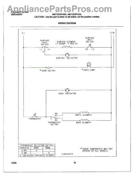 Parts for White Westinghouse WEF303PHWA: 10 - Wiring Diagram Parts