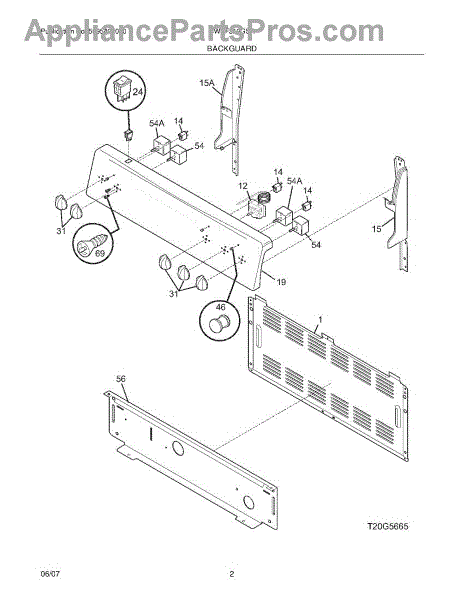 A replacement backguard panel that restores the finished rear control-console area on a range or cooktop. Replaces damaged or dented trim so controls and wiring behind the console are protected and the appliance looks complete. What it does: