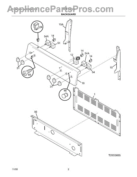 A replacement backguard panel that restores the finished rear control-console area on a range or cooktop. Replaces damaged or dented trim so controls and wiring behind the console are protected and the appliance looks complete. What it does: