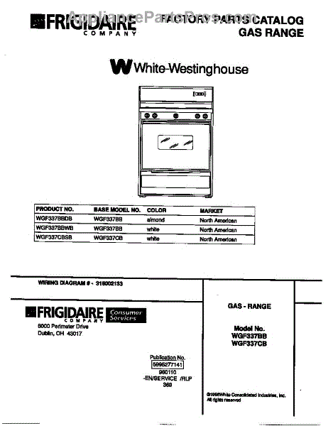 Parts for Frigidaire WGF337BBDB: 01 - Cover Parts