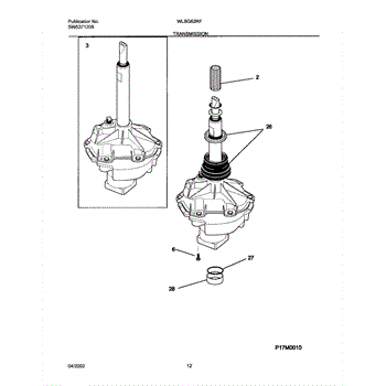 This transmission assembly drives the agitation and spin cycles by transferring motor power to the tub. Replacing a worn transmission helps restore proper wash action and spin performance.