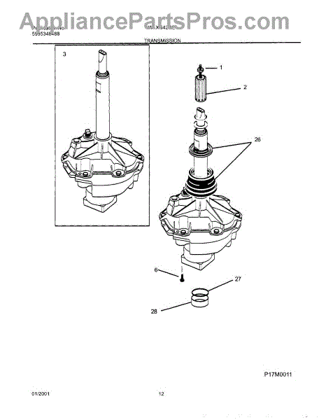 This replacement spacer positions the transmission bearing block to help maintain proper alignment and drivetrain spacing for reliable washer operation. It restores correct fit where worn or damaged spacers cause misalignment. What it does