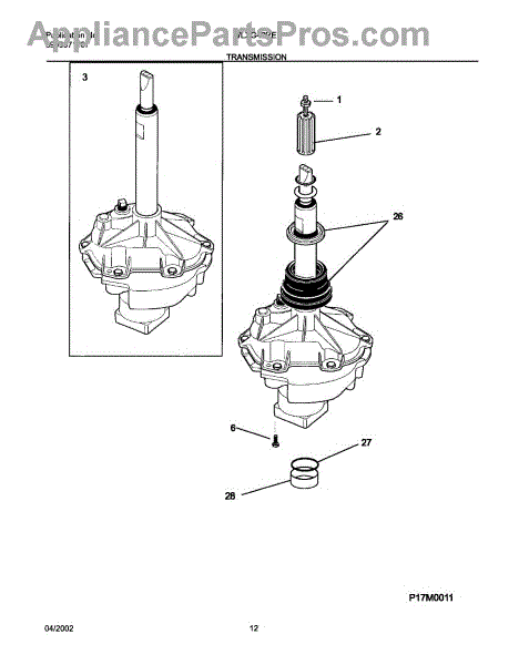 This replacement spacer positions the transmission bearing block to help maintain proper alignment and drivetrain spacing for reliable washer operation. It restores correct fit where worn or damaged spacers cause misalignment. What it does