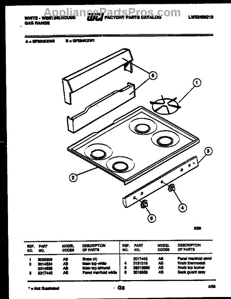 Parts for Frigidaire GF204KXD1: 02 - Backguard And Cooktop Parts