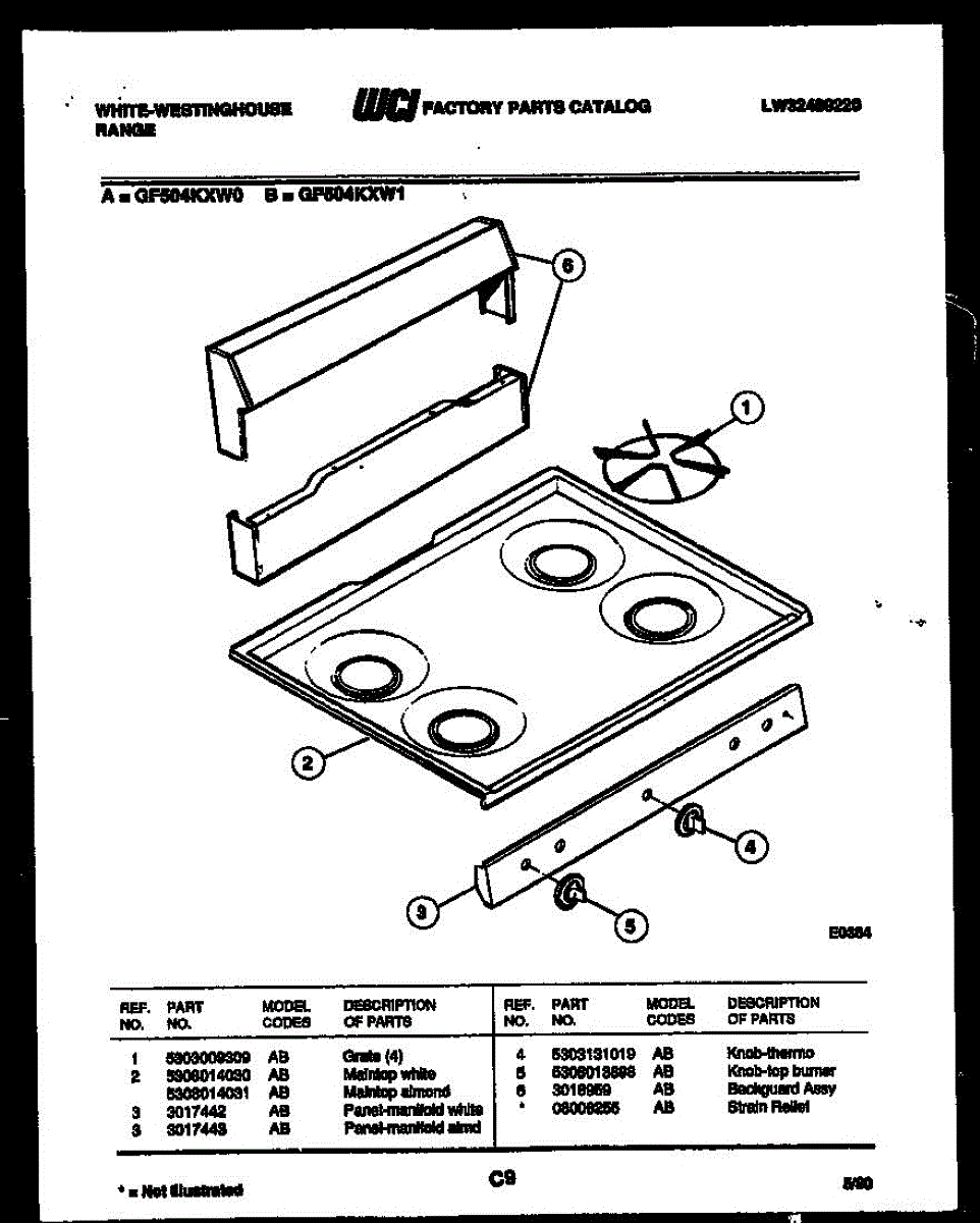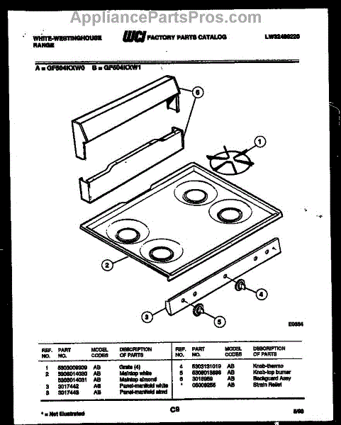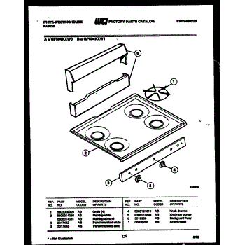 Parts for Frigidaire GF504KXD1: 02 - Cooktop Parts And Backguard Parts