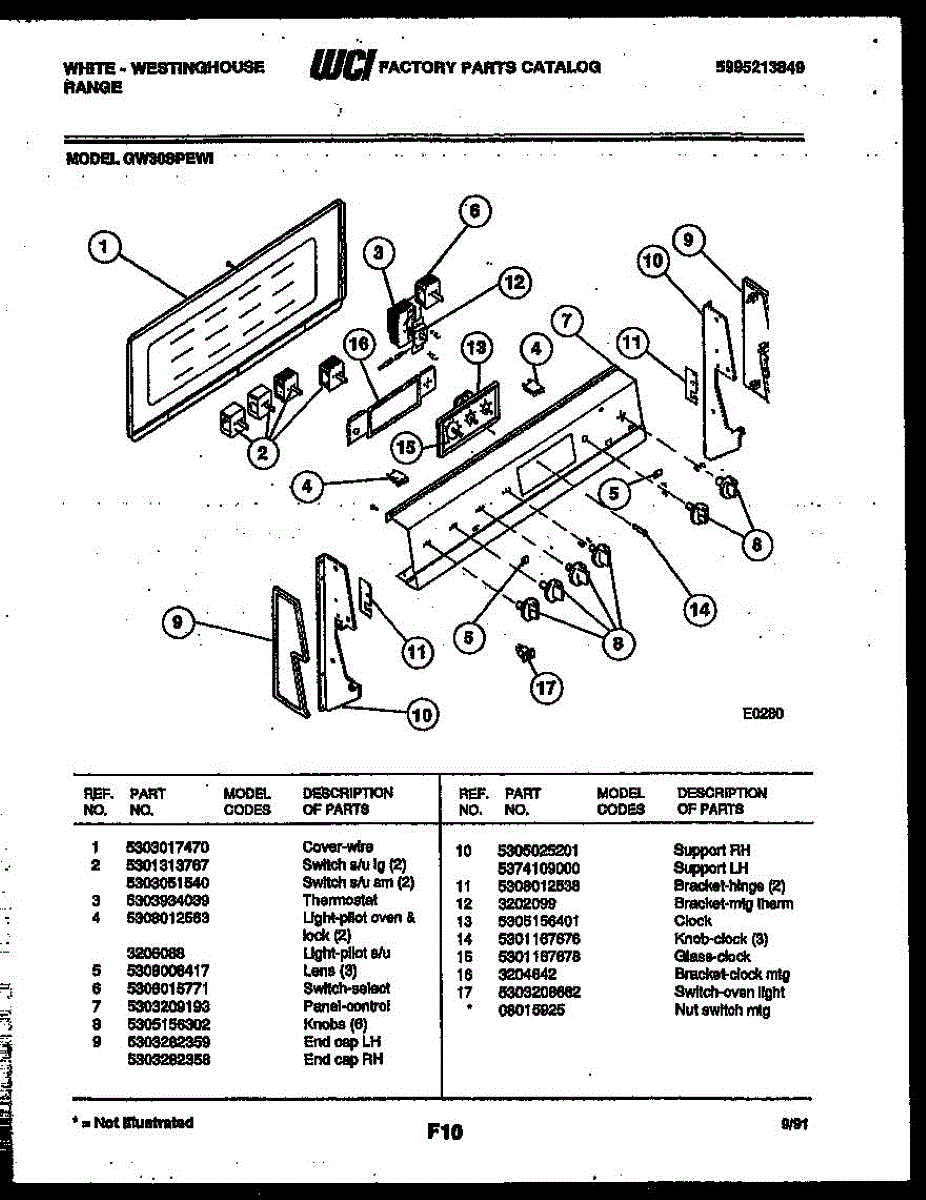 Parts for Frigidaire GW30SPEW1: 02 - Control Panel Parts