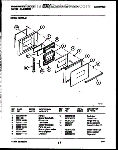 Parts for Frigidaire KB883LM1: 02 - Door Parts